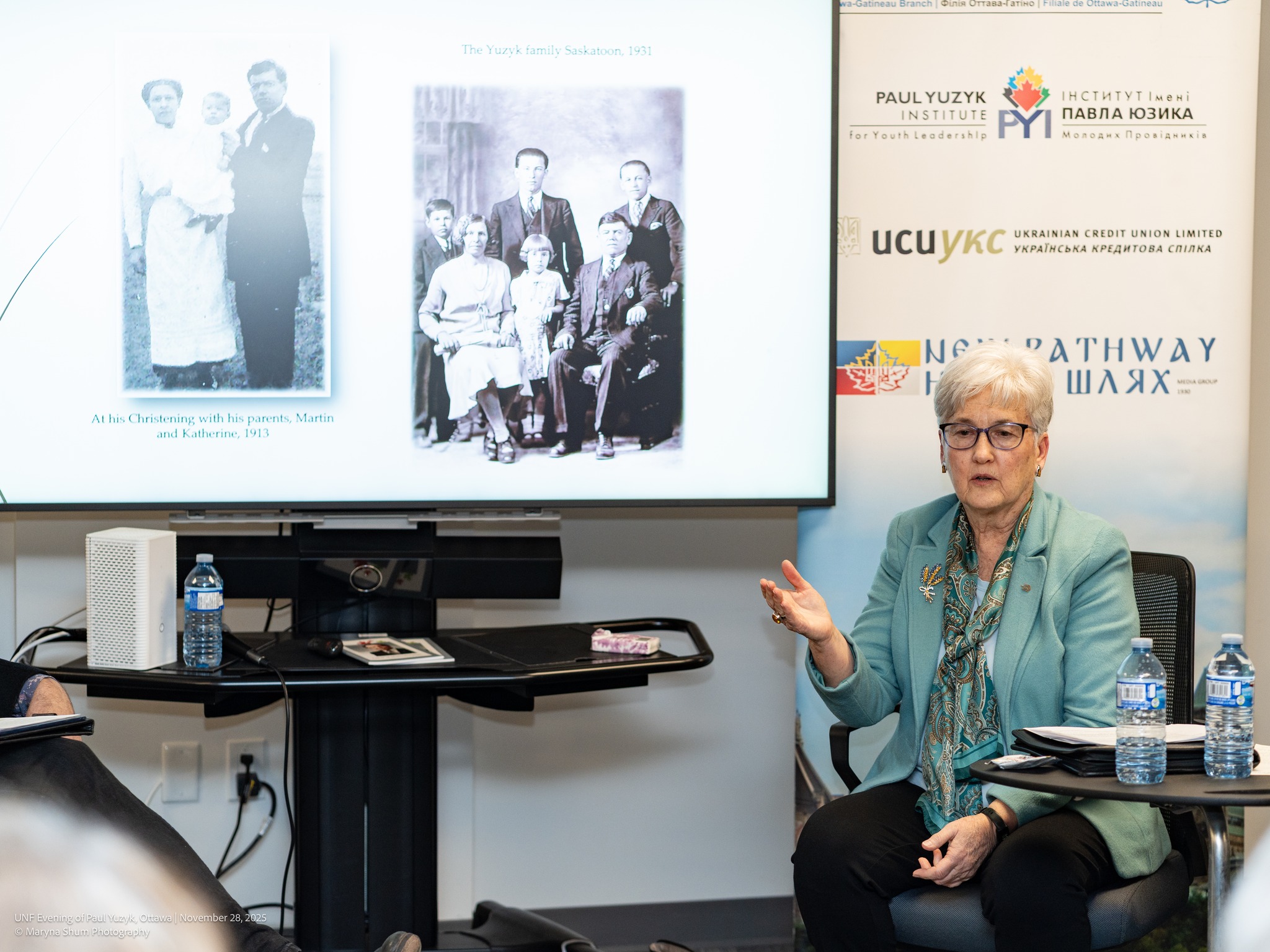 Пані Віра розповіла про корені родини: батьки Павла Юзика походили з Галичини та емігрували до Західної Канади, де зіткнулися з бідністю, важкими умовами праці та складною адаптацією. Переїзд до Саскатуну став переломним моментом – життя родини суттєво покращилося, а діти отримали ширші можливості для освіти. Батьки, а особливо матір, стали для Павла та його братів і сестер великим моральним орієнтиром, прищепивши їм працелюбність, цінність освіти та відповідальність перед громадою.