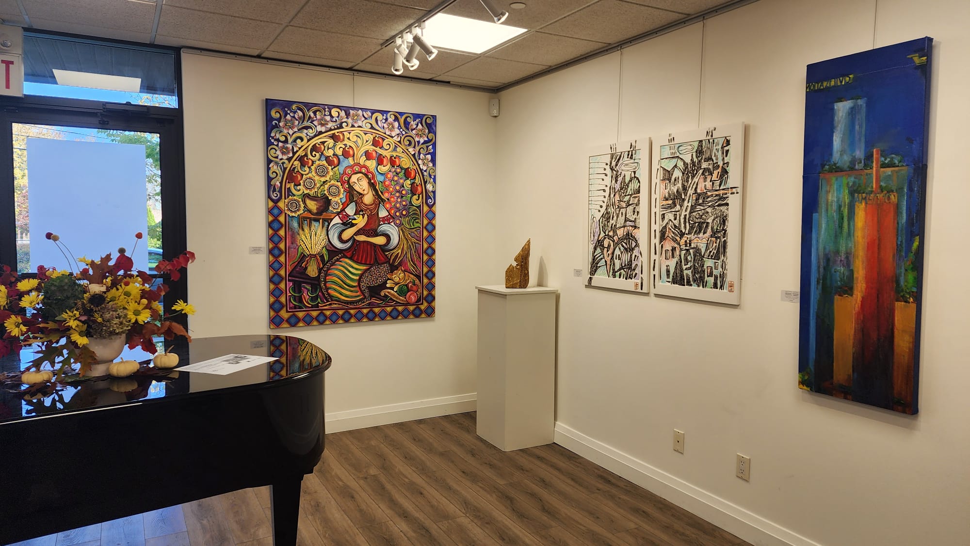 В експозиції представлено широкий спектр технік і стилів, від живопису й графіки до іконопису та монументального мистецтва. У кожній роботі відчуття часу, кольору, зв’язку з українською культурою, краси природи та людських переживань.