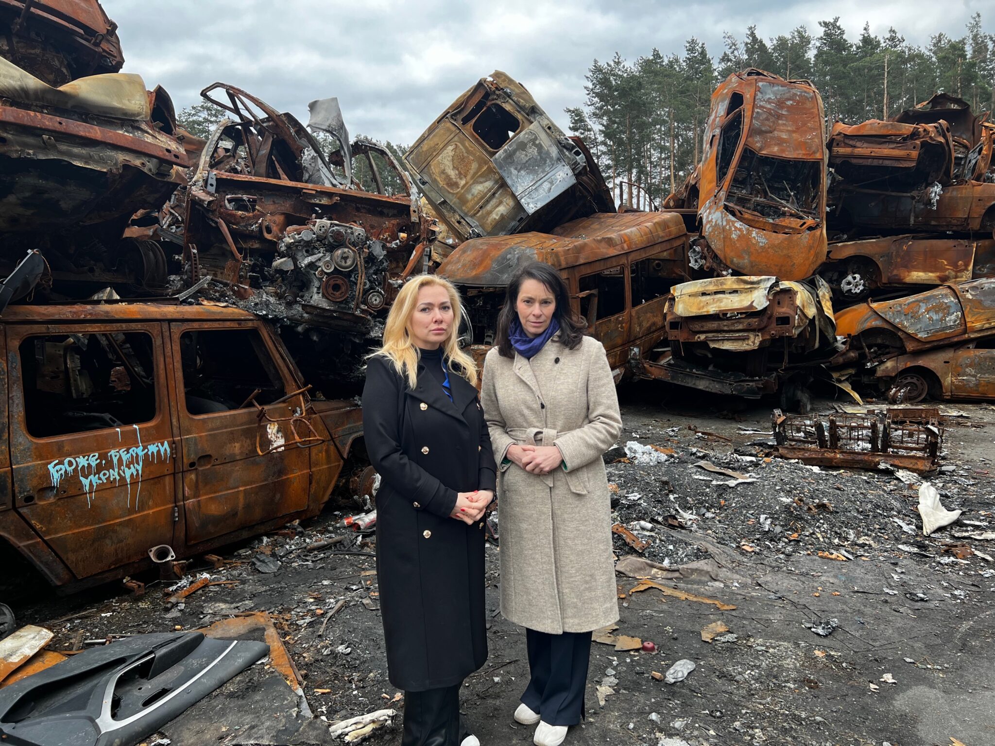 Heather McPherson in Irpin with Irpin City Councilor, Makeeva Angela in March 2023. MP McPherson’s Office