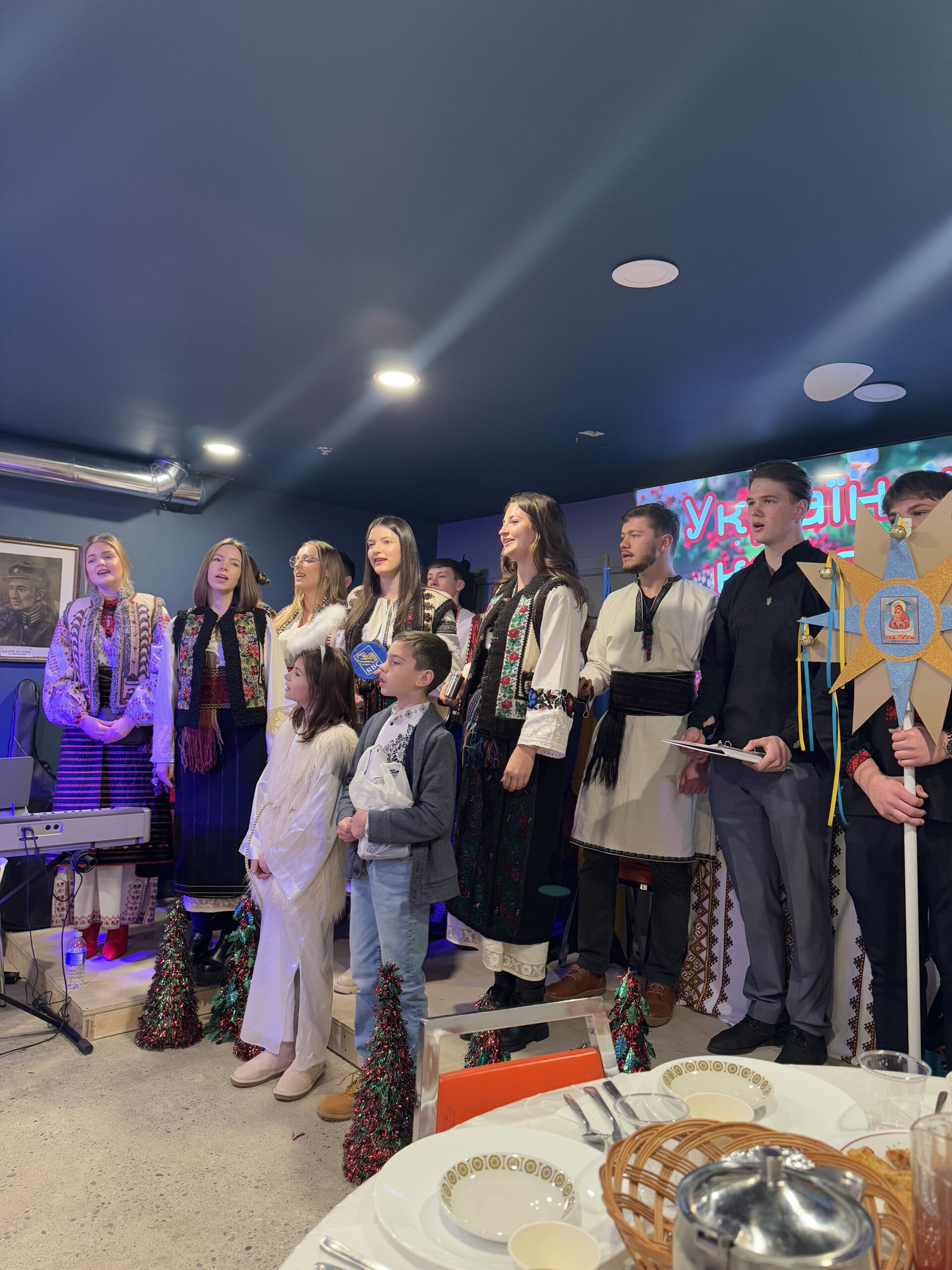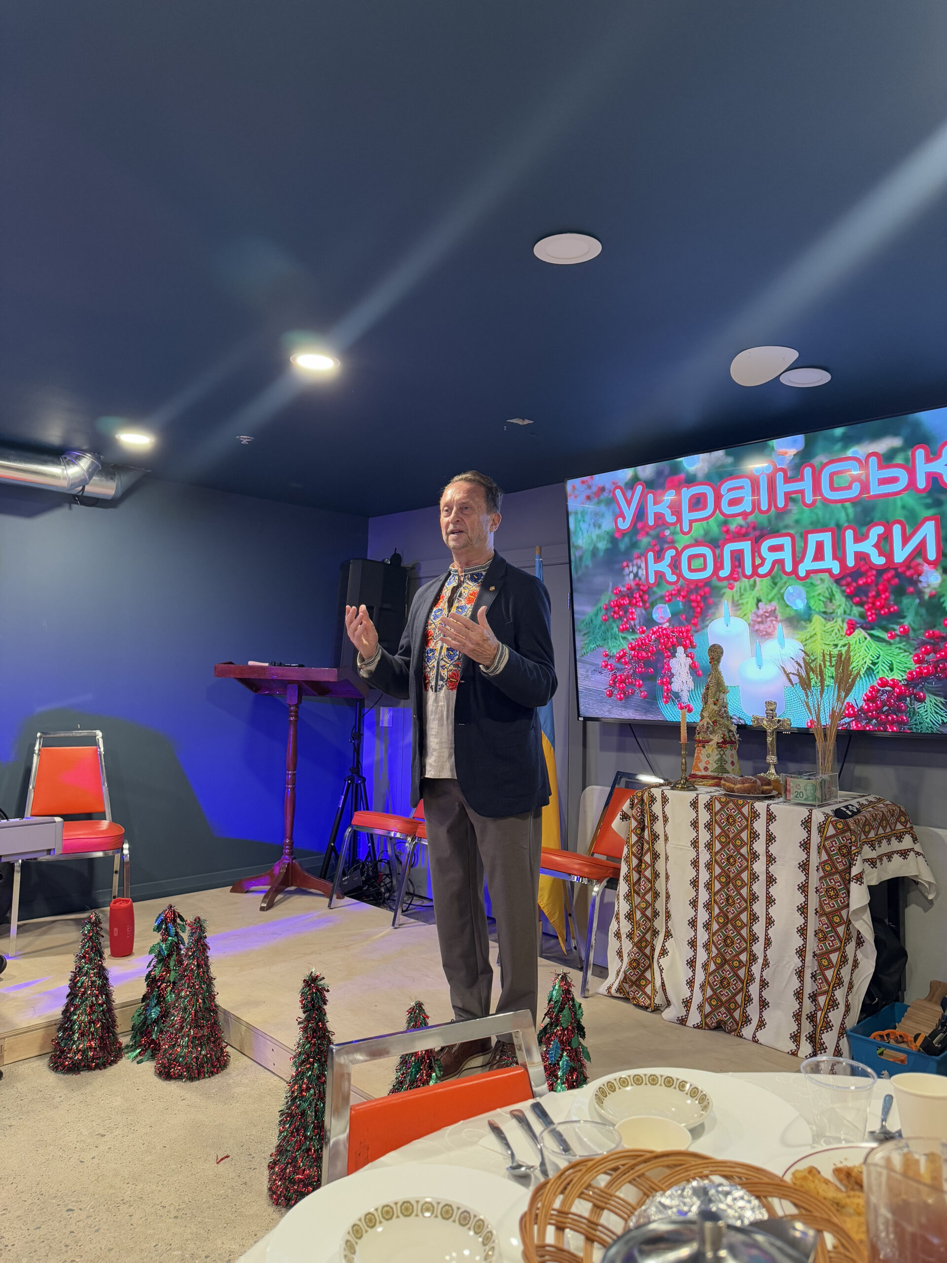 На свято були запрошені Крайовий Президент УНО п. Юрій Клюфас, отець Остап Чорній з Української Католицької Церкви Св. Володимира Великого, учні академії П. Юзика, діти садочку “Малятко”, члени МУНО. Діти потішили усіх чудовим співом та грою на народних інструментах. Особливо гарно звучала спільна коляда разом із українськими родинами, які були запрошені на свято. Згадали і відому на весь світ колядку “Щедрик” Миколи Леонтовича, оскільки були присутні земляки з місця народження автора. Члени МУНО усіх потішили чудовою колядою, а пані Оксана Коломоєць, голова ОУК виголосила чудову промову про жіночу гідність у цей непростий час.
