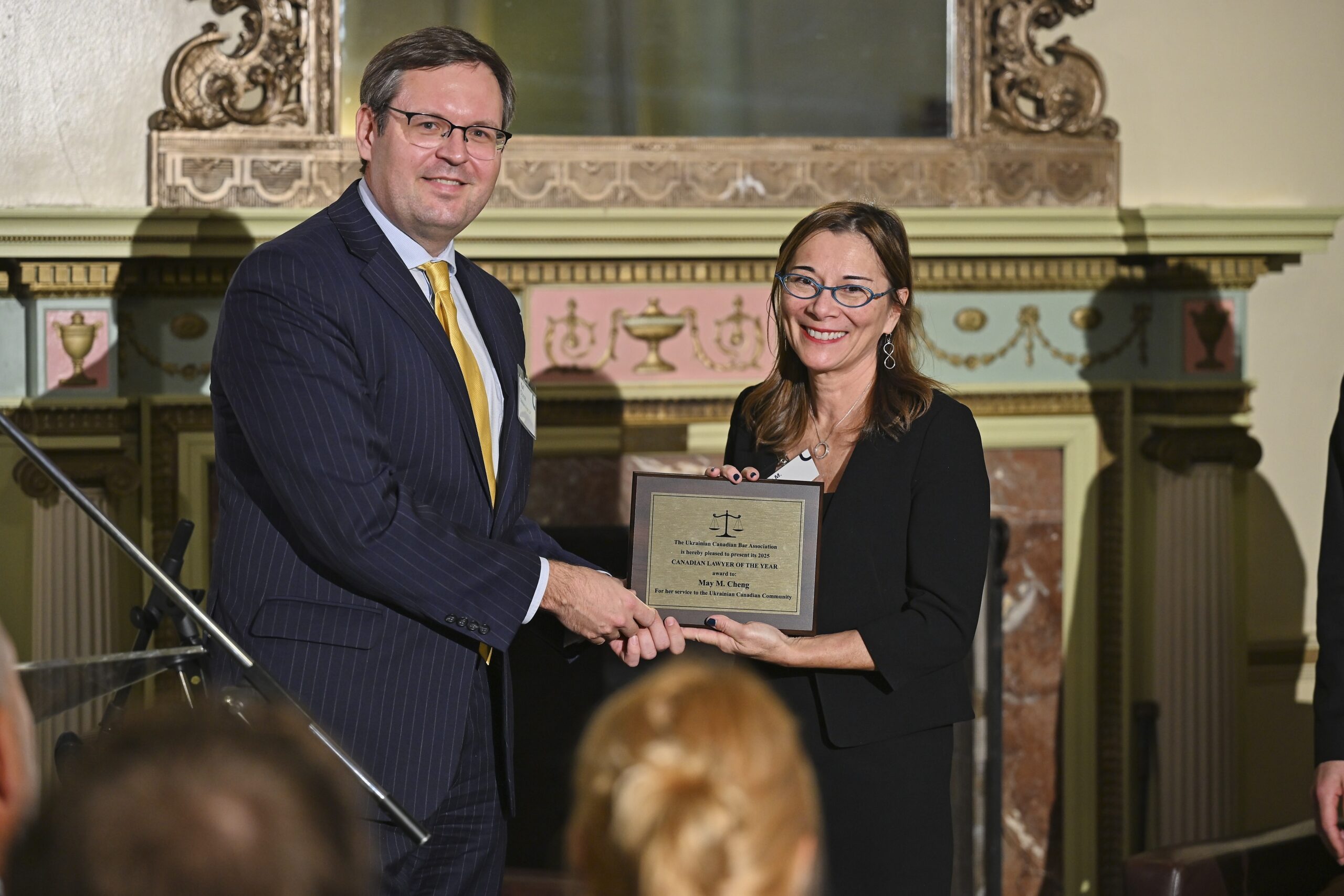 Мей М. Ченг (May M. Cheng) – Canadian Lawyer of the Year, за визначний внесок у підтримку українсько-канадської спільноти. Після отримання відзнаки вона виголосила короткі подячні слова.