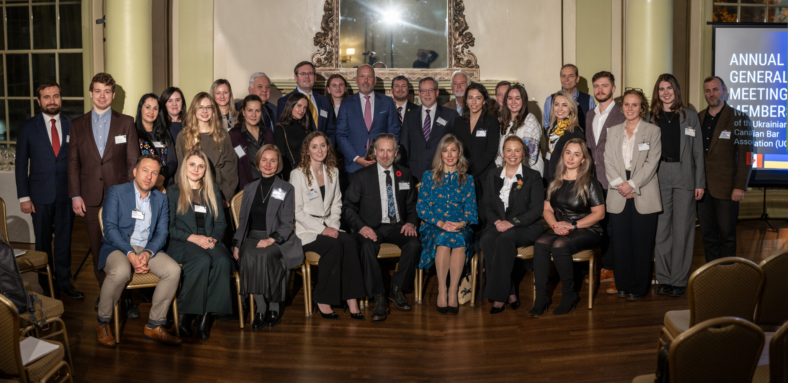 У четвер, 13 листопада, в історичній будівлі University Club of Toronto (380 University Ave) відбулося щорічне засідання Української Канадської Асоціації Юристів (Ukrainian Canadian Bar Association, UCBA) – 2025 Annual General Meeting. Захід традиційно зібрав представників правничої спільноти з різних провінцій Канади, а також учасників, які долучилися у віртуальному форматі. UCBA AGM є однією з ключових подій року для українсько-канадських юристів: тут підбивають підсумки діяльності, представляють звіти, обирають членів ради директорів і обговорюють напрями підтримки України в умовах війни. Ведучою зустрічі стала член ради директорів UCBA Олена Шкаровська, яка відкрила подію, привітала учасників та висловила подяку спонсорам – Ukrainian Credit Union, Dickinson Wright LLP та Pallett Valo LLP, чия підтримка зробила проведення заходу можливим.