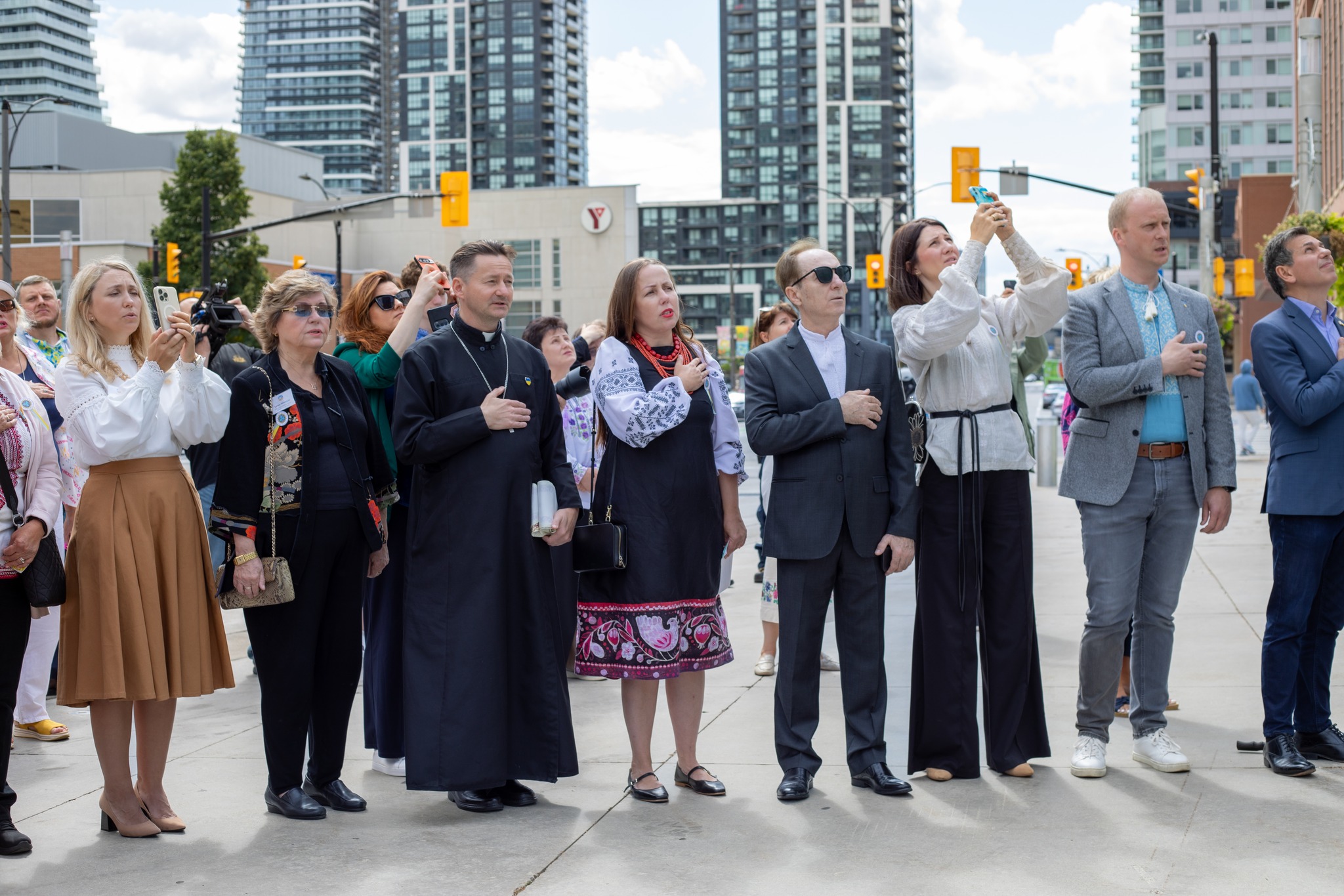 Церемонія розпочалася перед Mississauga City Hall з вітальних слів, підняття українського прапора та спільного виконання Гімну. У церемонії взяли участь Консул України в Торонто Олег Ніколенко та його дружина Маргарита, депутат провінційного парламенту Онтаріо Шереф Сабаві, муніципальна радниця Кріс Фонсека, члени міської ради, а також президент Конґресу українців Канади – Провінційної ради Онтаріо Тарас Багрій. Отець Володимир Нестеренко з українського католицького Собору Успення Пресвятої Богородиці розпочав захід молитвою. Офіційну програму доповнили музичні виступи, на скрипці грала Олександра Федишин, на фортепіано – Ольга Попова; а також частування гостей кавою, чаєм і українськими солодощами. Увечері будівлю мерії підсвітили синьо-жовтими кольорами – ще один символічний акцент на пошану до української спадщини.