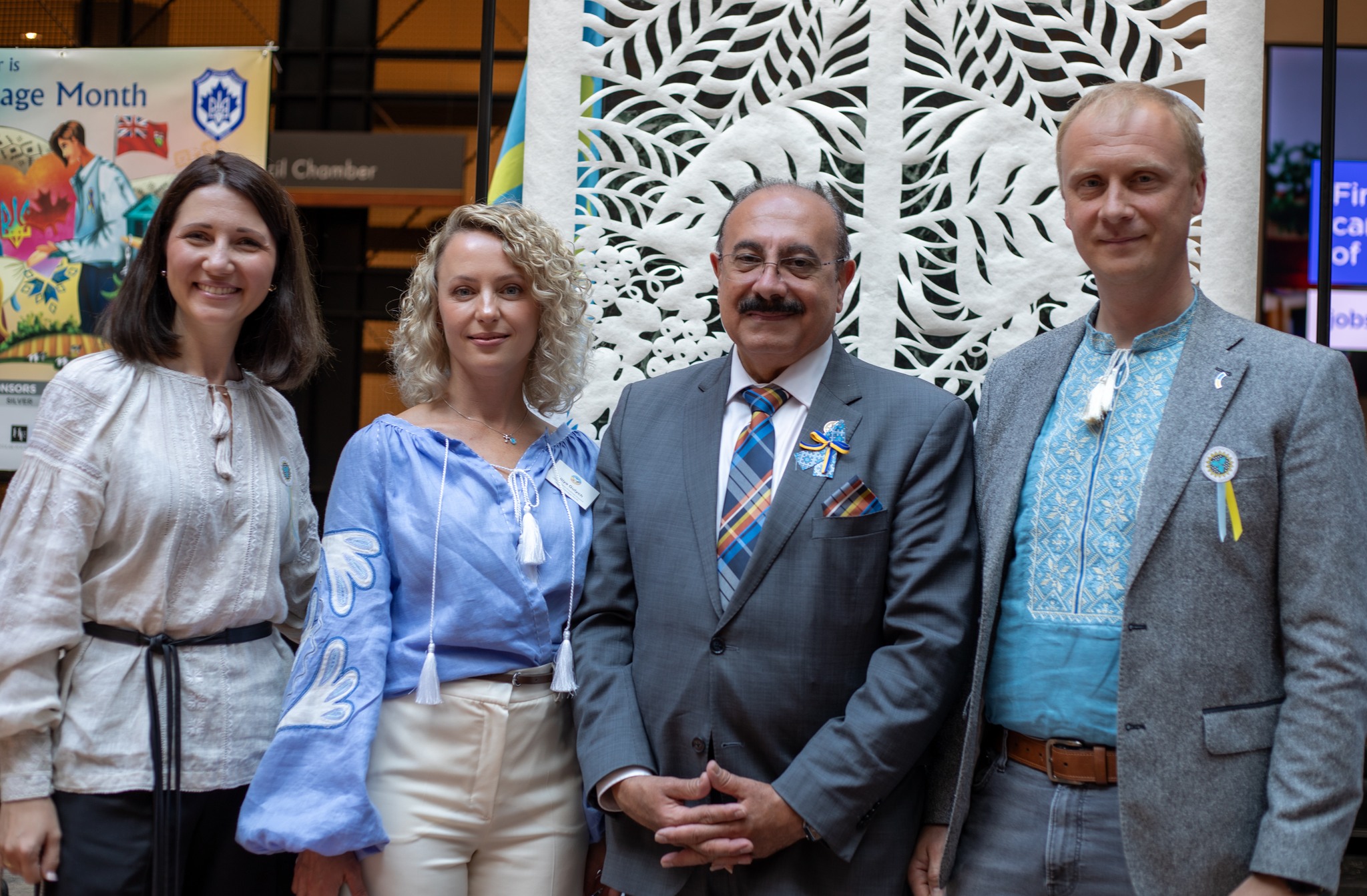 Після офіційної частини учасники були запрошені до мерії, де відбулося відкриття виставки витинанок під назвою «The Art of Vytynanka». Її автором стала відома мисткиня Оля Ткаченко, яка переїхала до Канади у 2014 році й відтоді презентувала свої роботи у Франції, Україні та Канаді. Виставку курувала голова Комітету Місяця української спадщини Лілія Гулич, членкиня Ради директорів КУК-ОПК, мисткиня й дизайнерка інтер’єрів. У своїй промові пані Лілія наголосила на подвійній оптиці події: повага до історичного внеску українців у Канаду і нагадування про війну, яка триває в Україні й потребує нашої допомоги. Вона зазначила: «Місяць української спадщини в Онтаріо – це можливість поділитися нашою культурою та вшанувати внесок українських канадців у розвиток Канади з 1891 року… Він також нагадує нам, що жорстока війна в Україні все ще триває і що наша підтримка є необхідною».