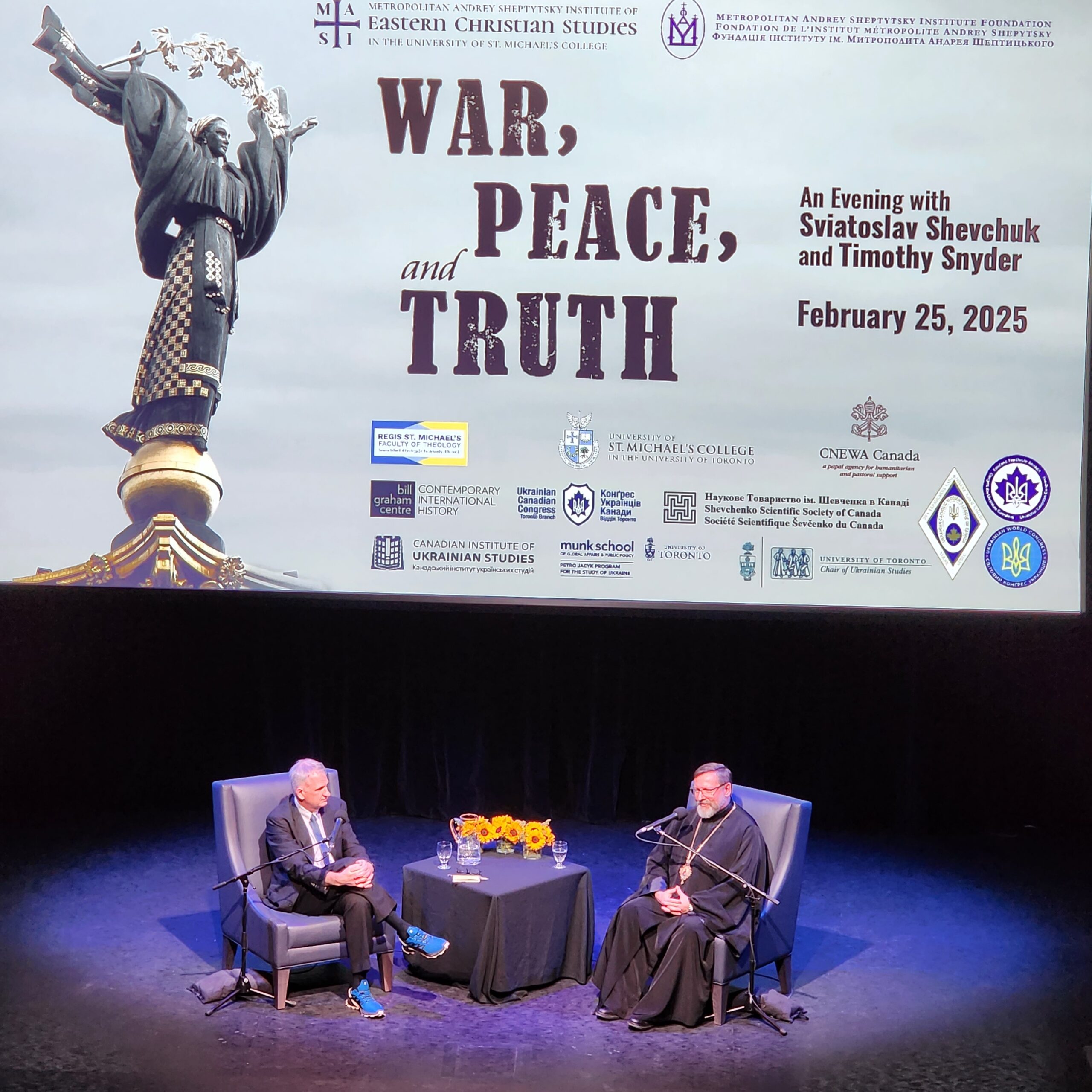 У Торонтському університеті 25 лютого відбулася визначна подія – зустріч з Главою Української Греко-Католицької Церкви Блаженнішим Святославом Шевчуком та відомим істориком Тімоті Снайдером. Організований Інститутом Східнохристиянських студій ім. Андрея Шептицького, захід зібрав широку аудиторію, зацікавлену в осмисленні сучасних викликів, перед якими стоїть Україна та світ.